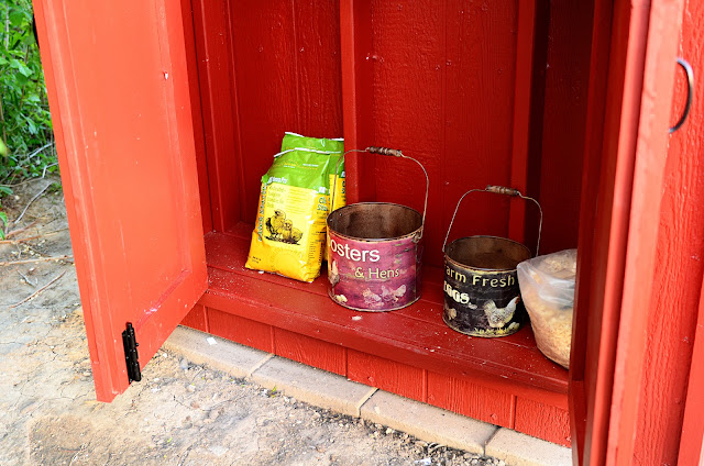 The Chick and The Prince have determined that raising hens requires lots of food and supplies. A secure cupboard was constructed to store it all!