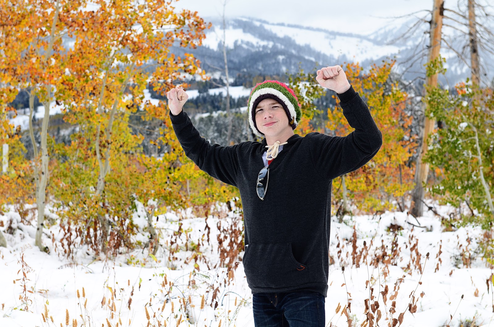 Arriving at Beaver Mountain, the ski resort is under a blanket of fall snow and colorful leaves.